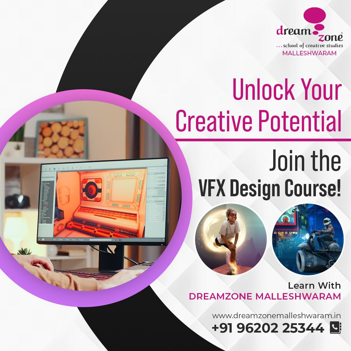 Step into the world of visual effects with our VFX Design program at Dream Zone Malleshwaram. Learn from industry experts and unleash your creativity to bring your wildest imaginations to life!