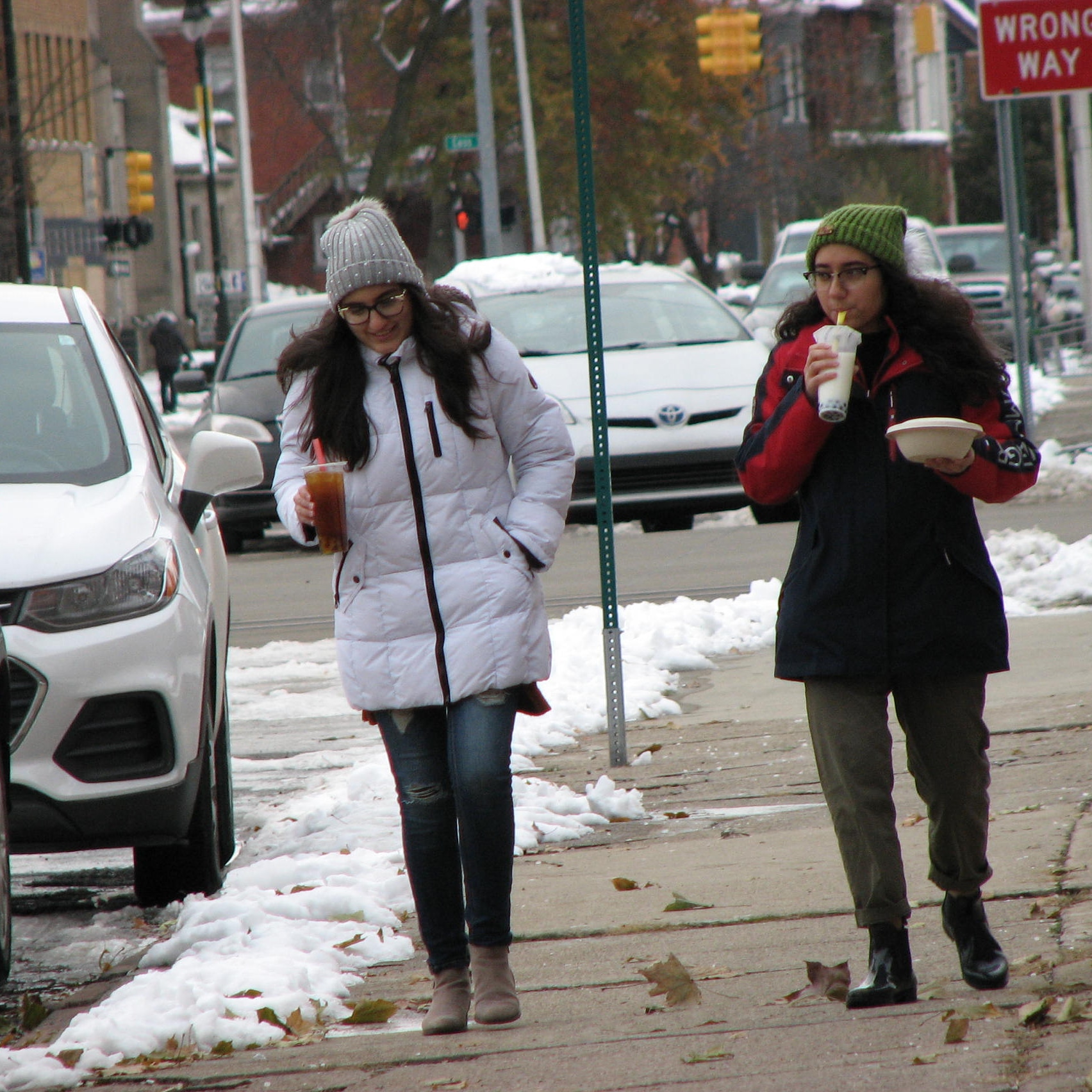 2 young ladies walking down Forest E