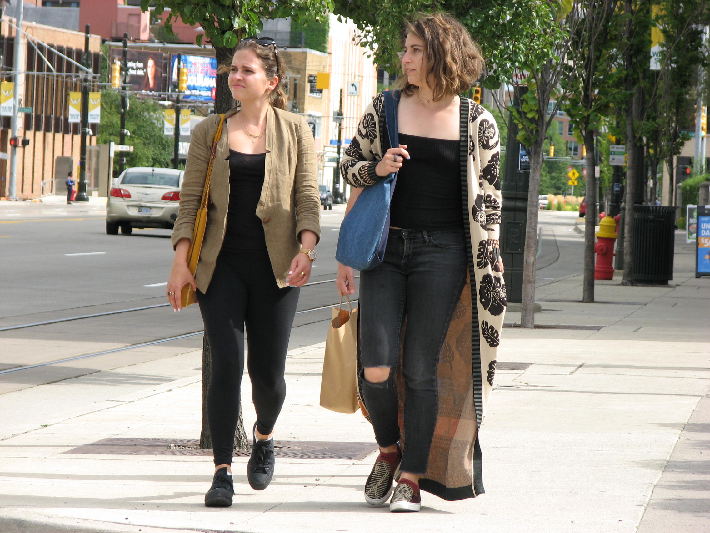 2 friends walking down Woodward Avenue