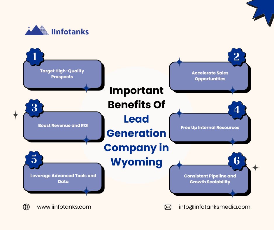 Choosing the right Lead Generation Company in Wyoming can transform your sales pipeline and elevate business growth by consistently delivering high quality prospects that are ready to engage. IInfotanks stands out as a results oriented partner with a strategic focus on data accuracy, multi channel outreach, verified contact intelligence, and measurable outcomes tailored to Wyoming businesses.