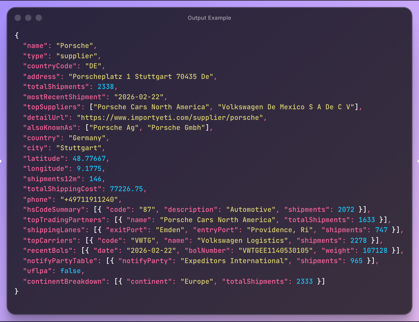 importyeti output example