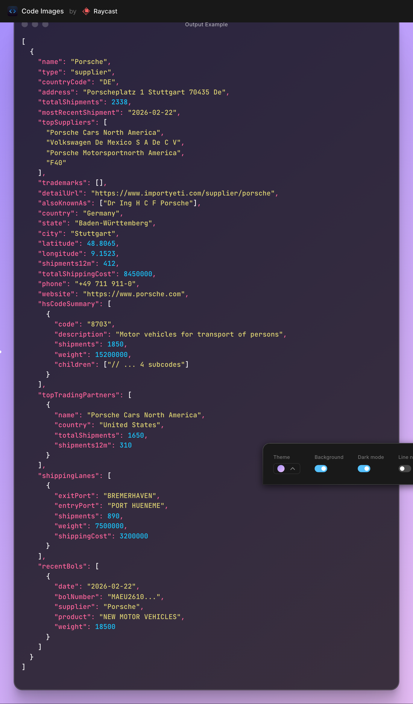 importyeti output example
