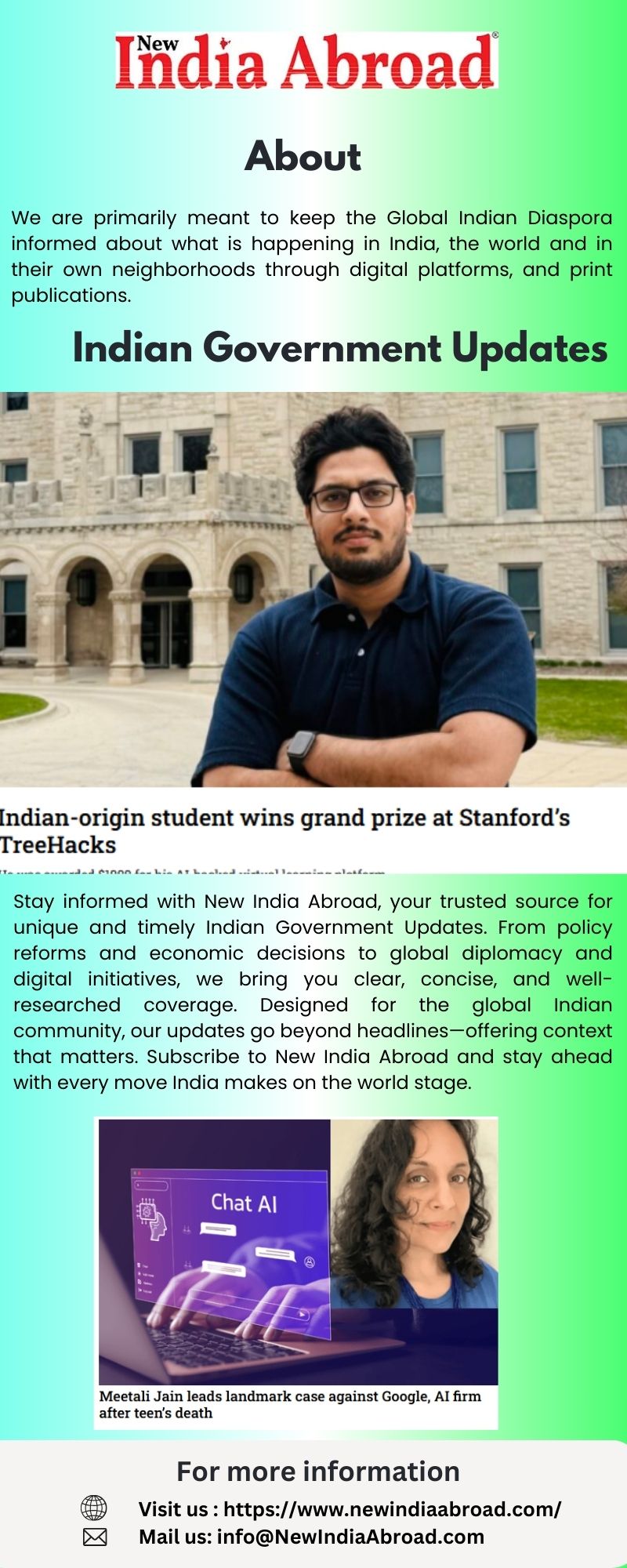 Stay ahead with reliable and timely Indian Government Updates from New India Abroad. We bring you verified news on policies, reforms, schemes, and diaspora-relevant decisions—curated specially for global Indians. From economic initiatives to digital governance, our insights help you understand how India is evolving and how it affects you. Trust New India Abroad for a fresh, informed, and uniquely global perspective on Indian governance.