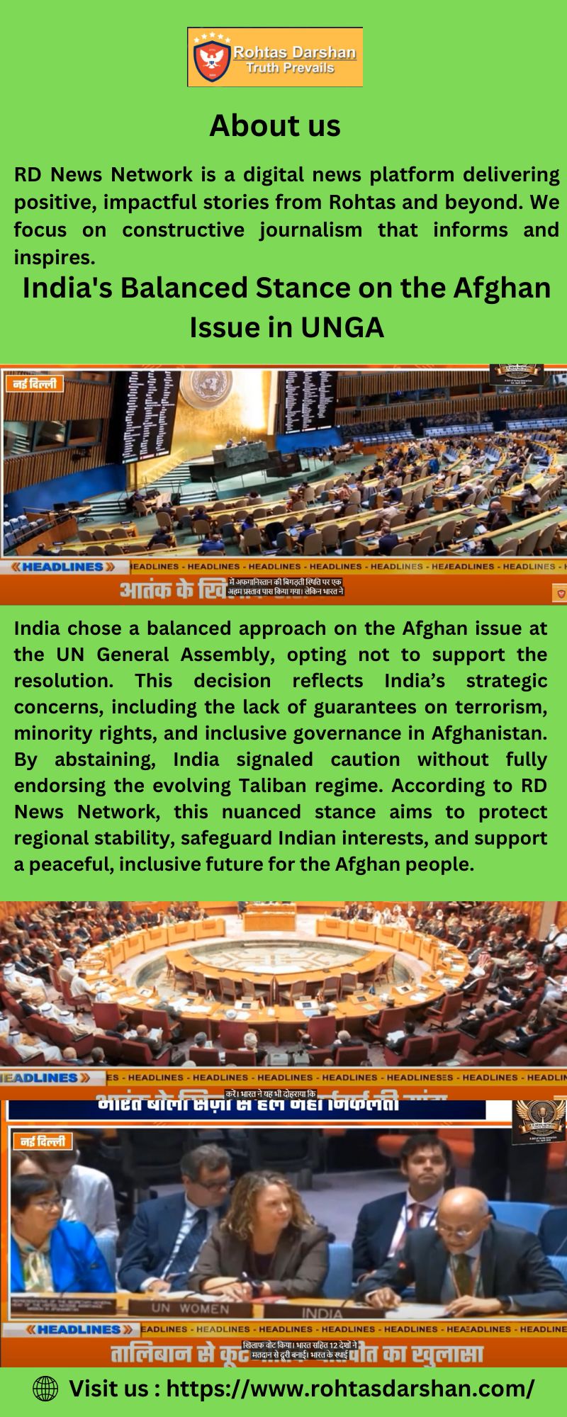 India took a measured and balanced stance on the Afghan issue in the UNGA, choosing not to support the resolution outright. This decision was rooted in concerns over the resolution’s failure to explicitly address terrorism threats from Afghan soil and the lack of accountability for the Taliban regime. RD News Network reports that India emphasized regional stability and the protection of Afghan minorities, especially women and children. By abstaining, India signaled the need for a more inclusive and security-focused approach.