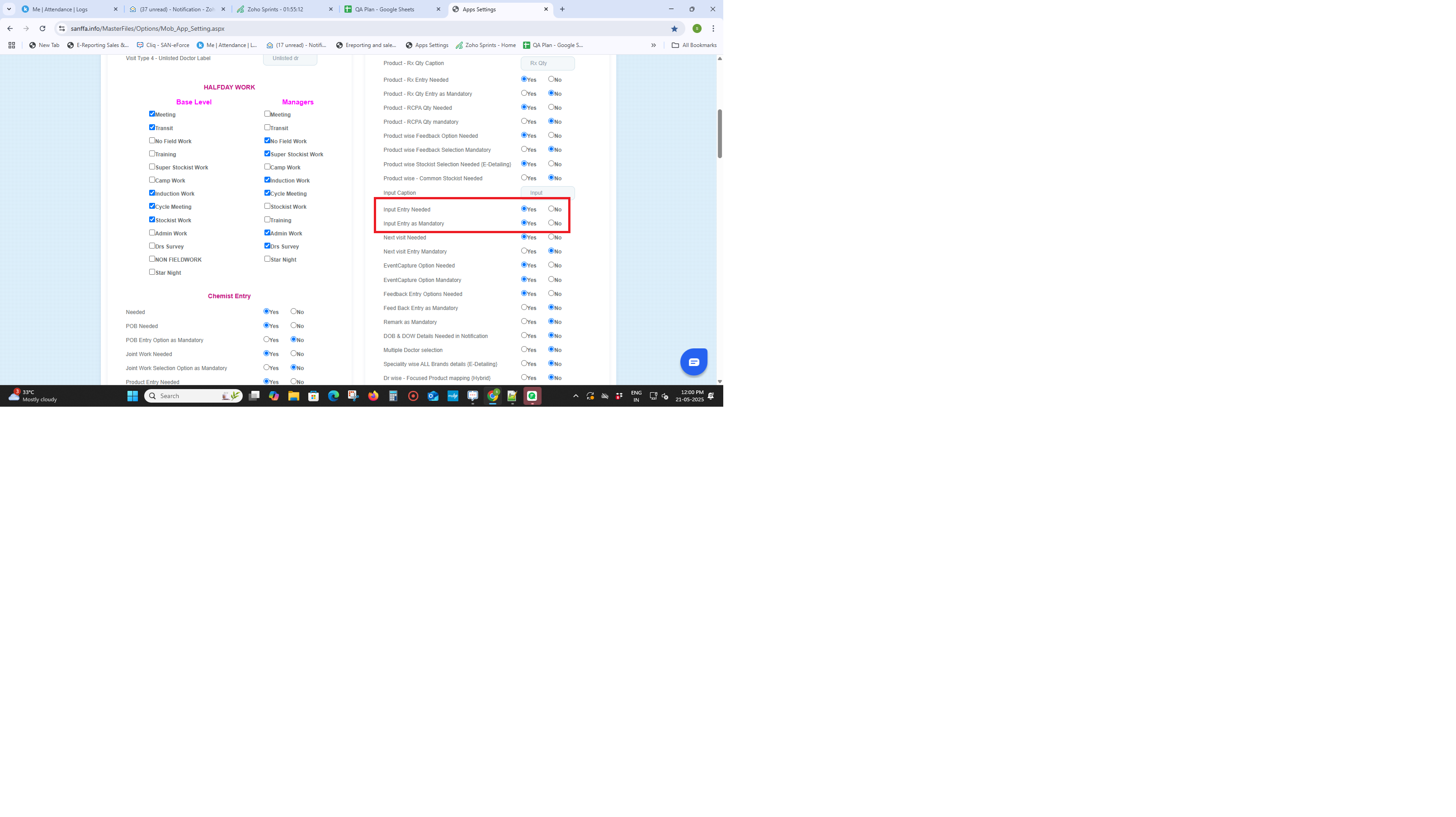 Input setup