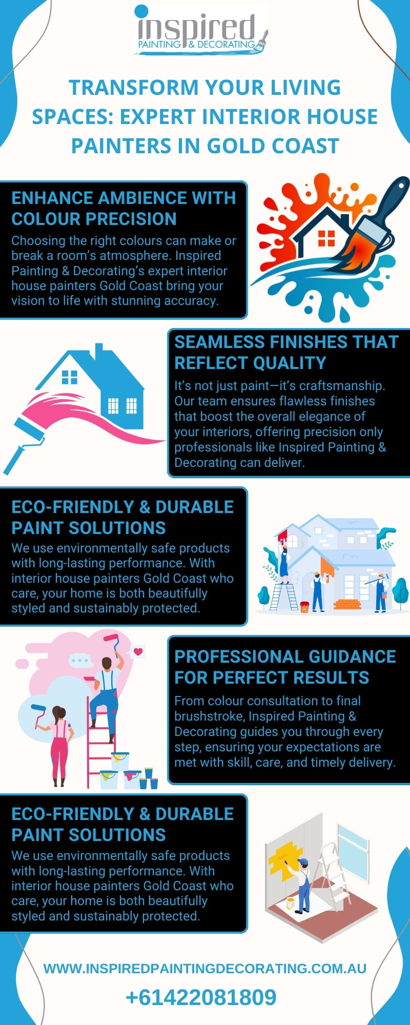Use Inspired Painting & Decorating's skilled interior home painters on the Gold Coast to revamp your living area. Every project is completed smoothly and with long-lasting quality thanks to our team. You can rely on our talented interior house painters Gold Coast to produce outstanding results whether you're painting a single room or your complete property. For a free consultation, give Inspired Painting & Decorating a call at 61422081809. Visit Now, https://inspiredpaintingdecorating.com.au/interior-house-painters-gold-coast/
