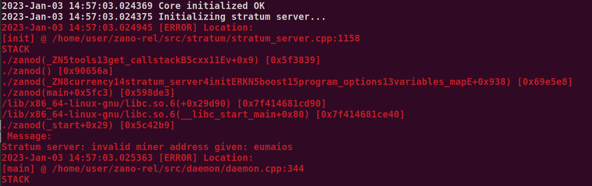 invalid miner address