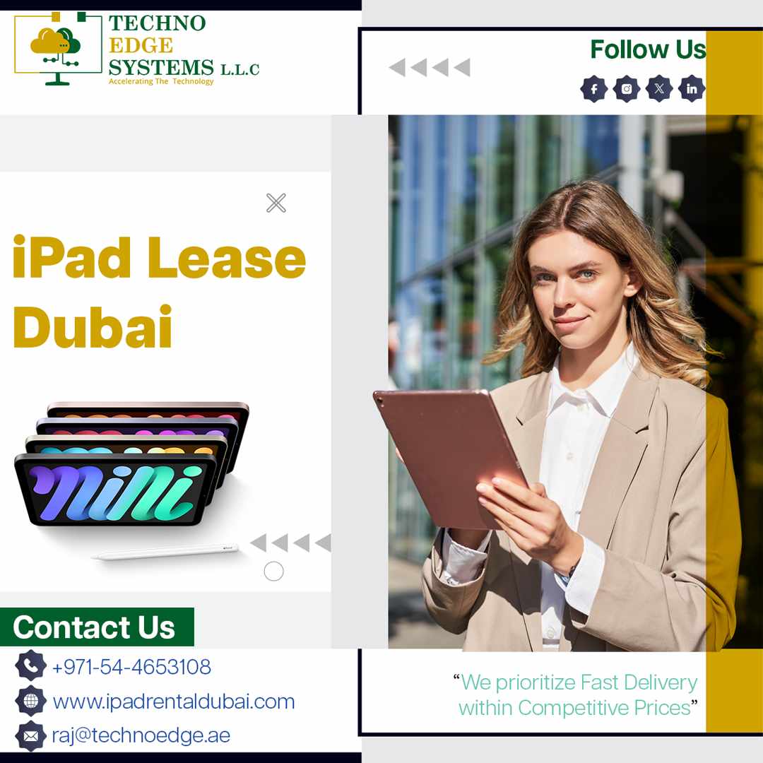 IPad Lease Dubai, iPads offer the ease and reliability to accomplish any task effectively with the numerous productivity apps available on them. iPads attached to a kiosk are great for generating business during tradeshows and exhibitions. For more info about Ipad Lease Dubai Contact Techno Edge Systems LLC 0544653108. Visit https://www.ipadrentaldubai.com