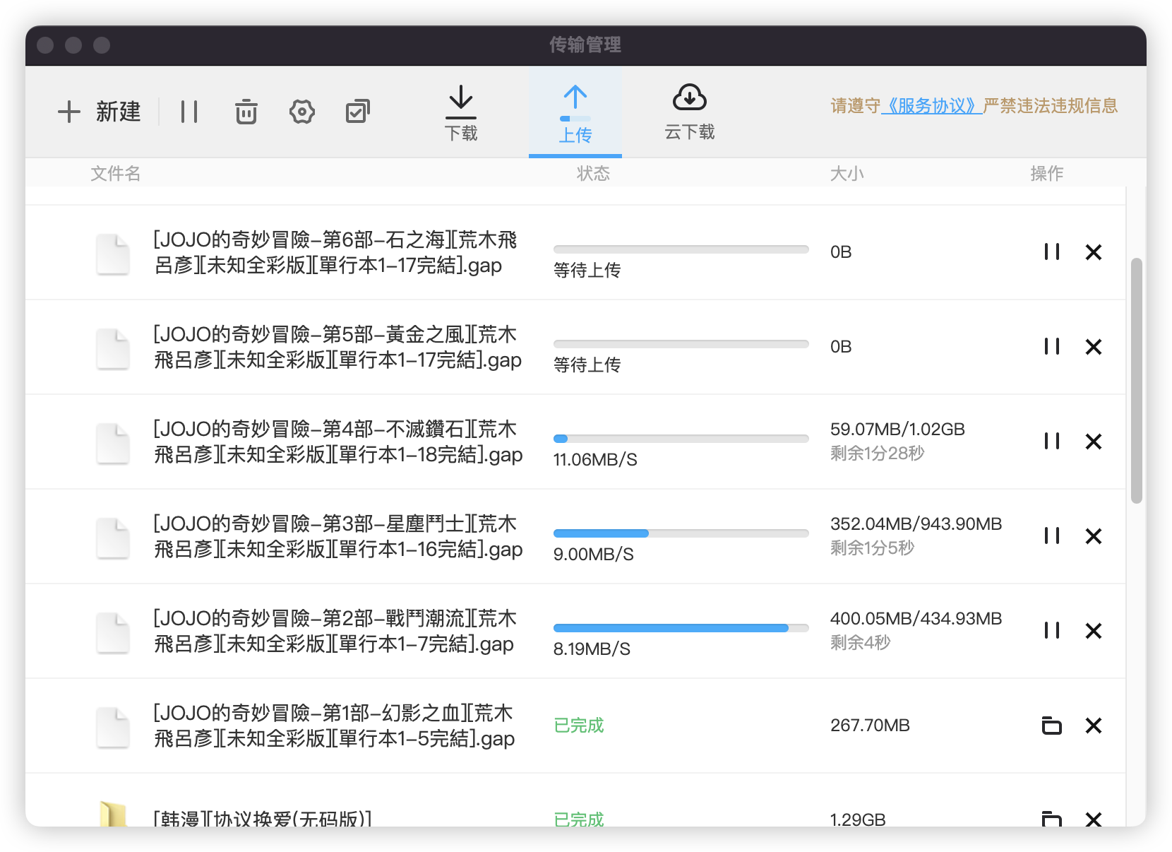 The queue is being uploaded, it should take just a few seconds to complete.