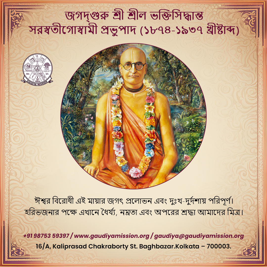 The world created by illusion (maya) that stands in opposition to God is filled with temptations and miseries. For those who practice the devotion of Hari (Haribhajana), patience, humility, and respect for others are our true allies.