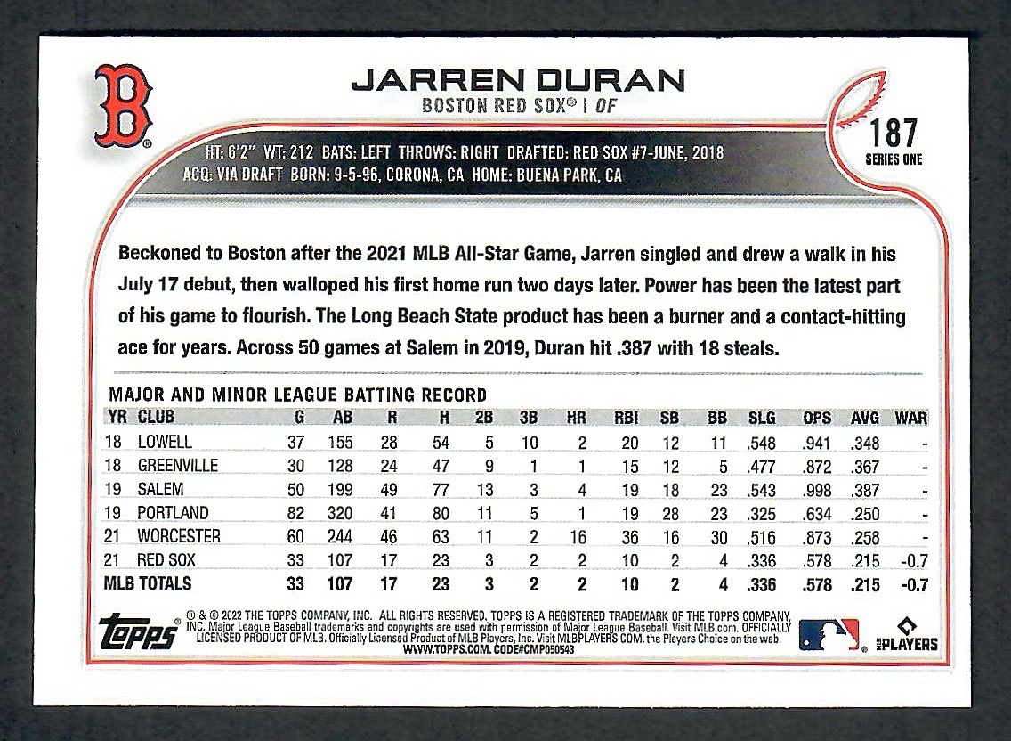 Jarren Duran Topps Gold Foil RC 1 2024 10 12 17 17 17