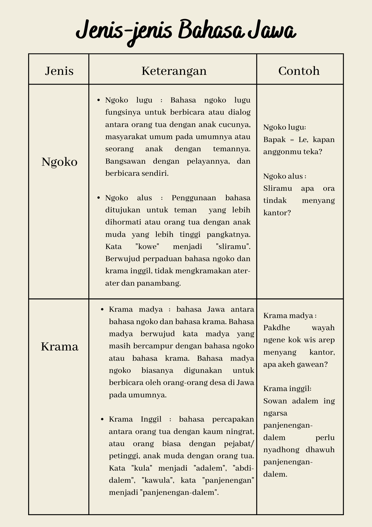 jenis jenis Bahasa Jawa