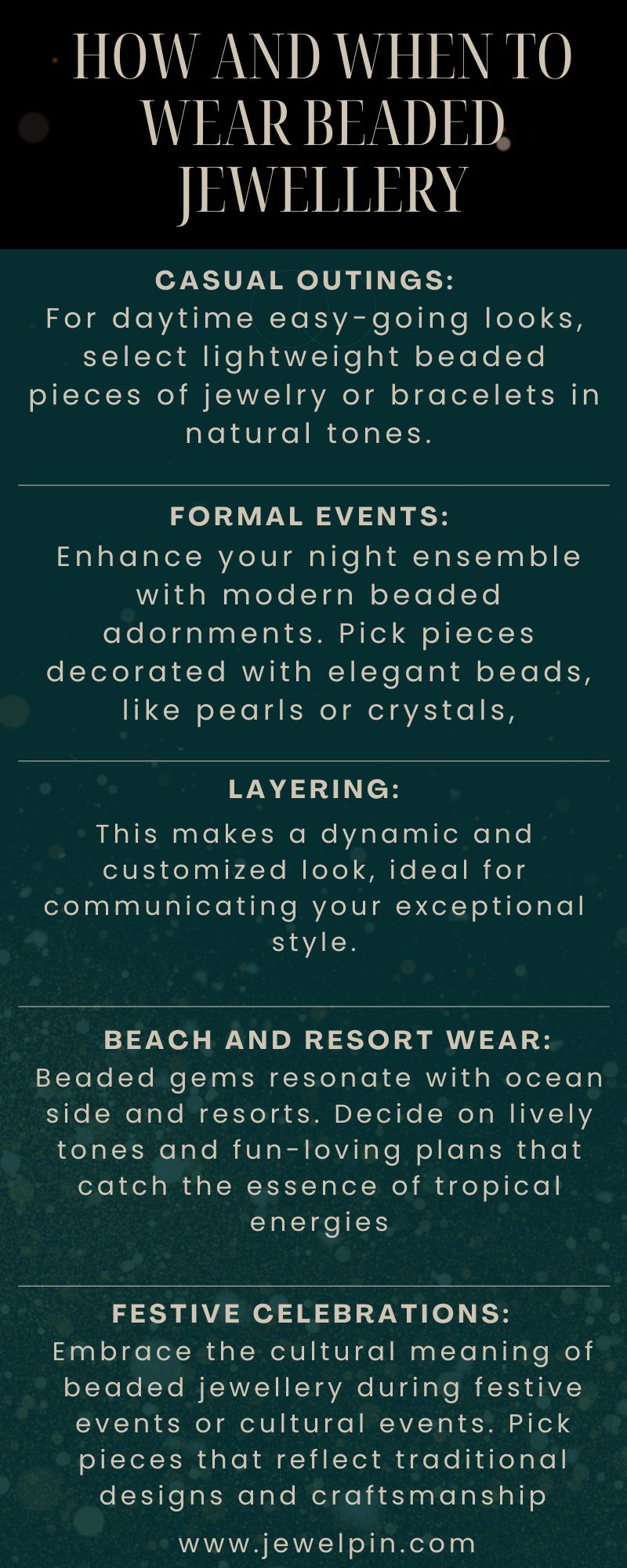 Beaded jewellery transcends occasions and styles, offering versatility and personal expression. Whether you're embracing casual chic or adding a touch of elegance to formal attire, beaded jewellery remains a timeless choice. Explore the diverse world of beaded gemstone jewellery at JewelPin and discover endless possibilities for enhancing your wardrobe and celebrating life's moments.