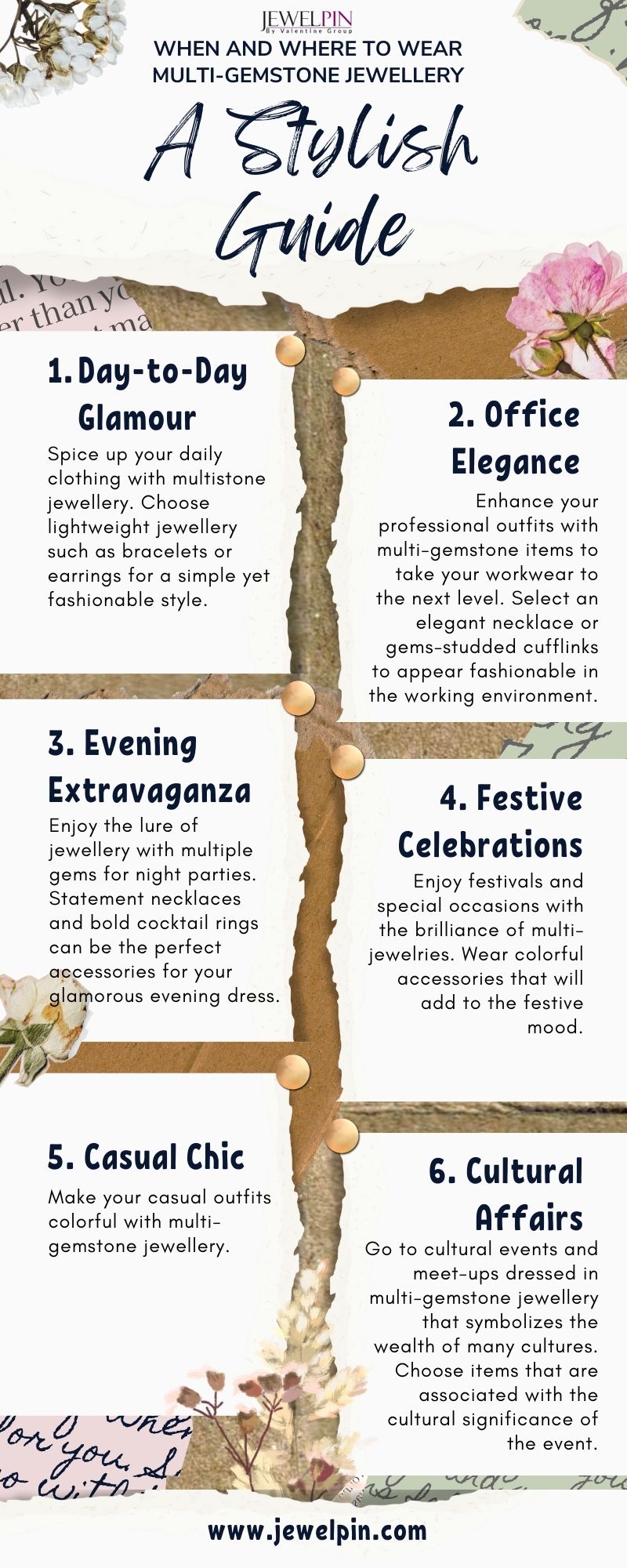 1. Day-to-Day Glamour: Spice up your daily clothing with multistone jewellery. Choose lightweight jewellery such as bracelets or earrings for a simple yet fashionable style.