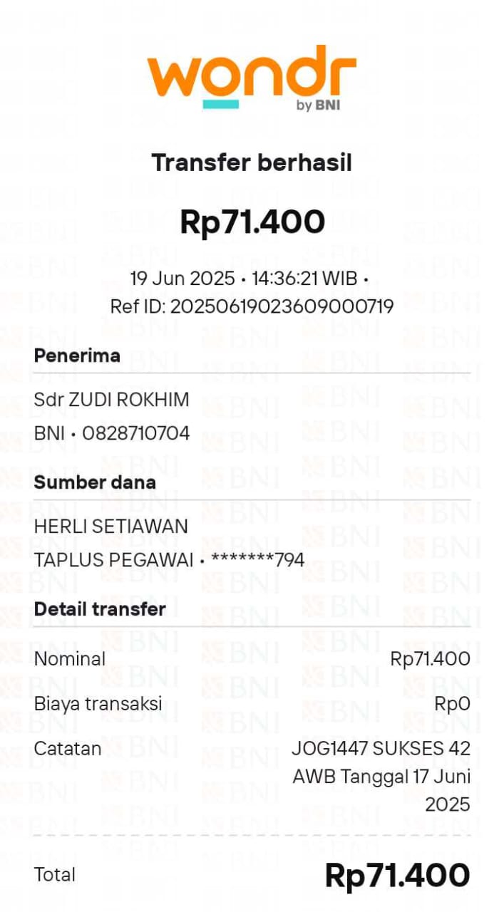 JOG1447 SUKSES 42 AWB TGL 17 JUNI 2025