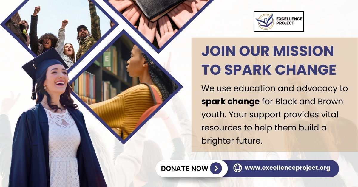 We use education and advocacy to spark change for Black and Brown youth. Your support provides vital resources to help them build a brighter future. https://www.excellenceproject.org/