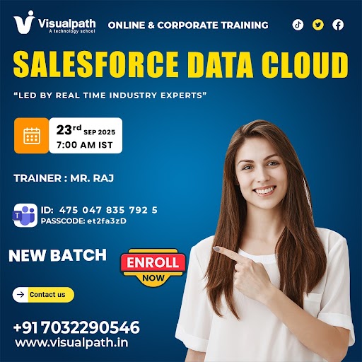 🚀 Boost Your Career with Salesforce Data Cloud Training! 👉 Join New Batch for Salesforce Data Cloud program and gain hands-on skills. 📅 Date: 23rd September 2025 🕘 Time: 7:00 AM (IST) 🔗JoinLink: http://bit.ly/3K3L1VH 🔑 Meeting ID: 475 047 835 792 5 👉 Passcode: et2fa3zD 👨🏫 Trainer: Mr. Raj ✨ Course Highlights: ✅ Expert Trainers (Live & Real-Time) ✅ Job-Focused Training Modules ✅ Hands-on Projects with Real-World Scenarios ✅ Daily Recorded Sessions 📌 Limited Seats – Enroll Now! 📞 Call us: +91 7032290546 🌐 Visit: https://www.visualpath.in/salesforce-data-cloud-training.html 💬 WhatsApp: https://wa.me/c/917032290546 👉Visit Blog: https://visualpathblogs.com/category/salesforce-marketing-cloud/