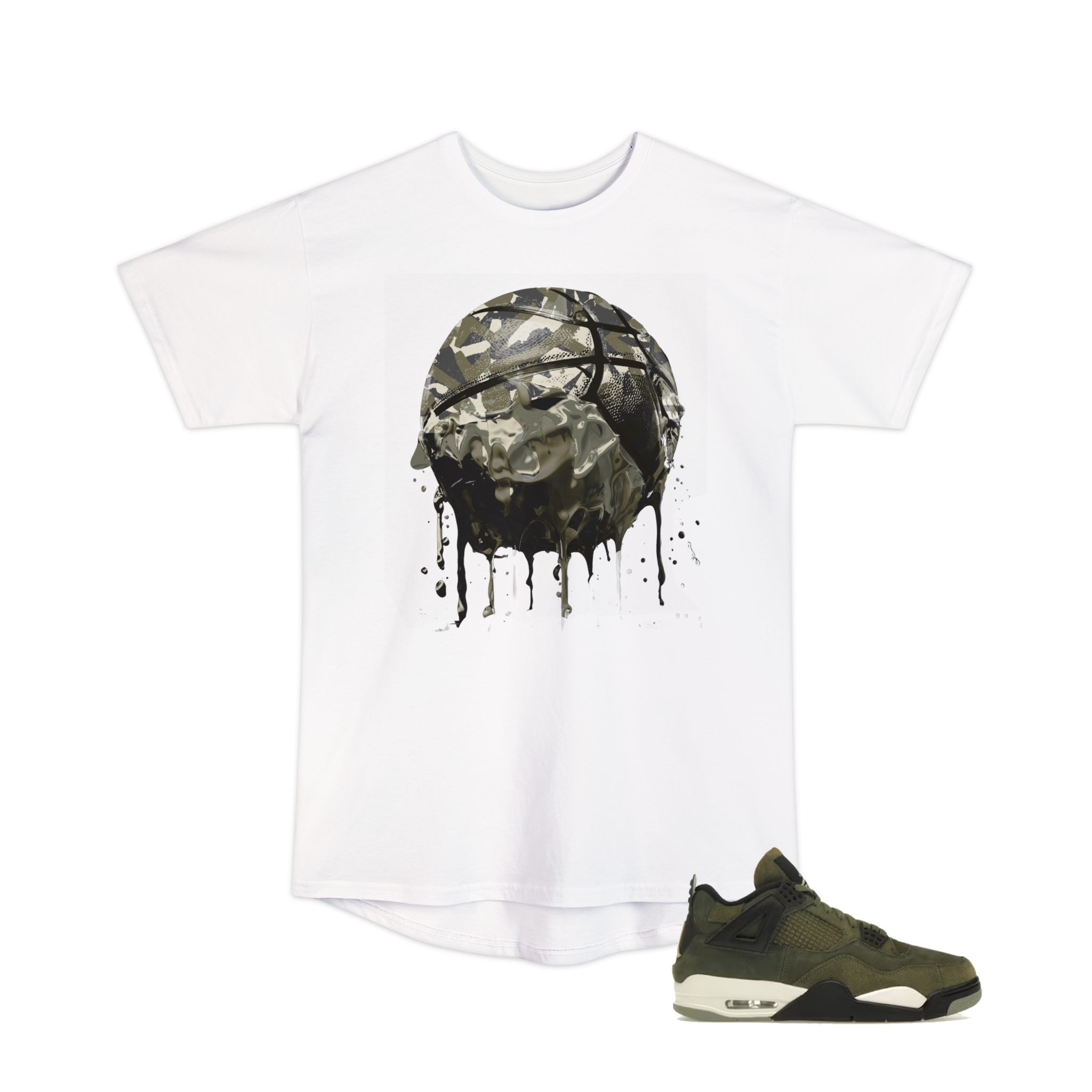 jordan 4 Retro SE Craft Medium Olive[MOCk][long body tee][melting basketball ho hands