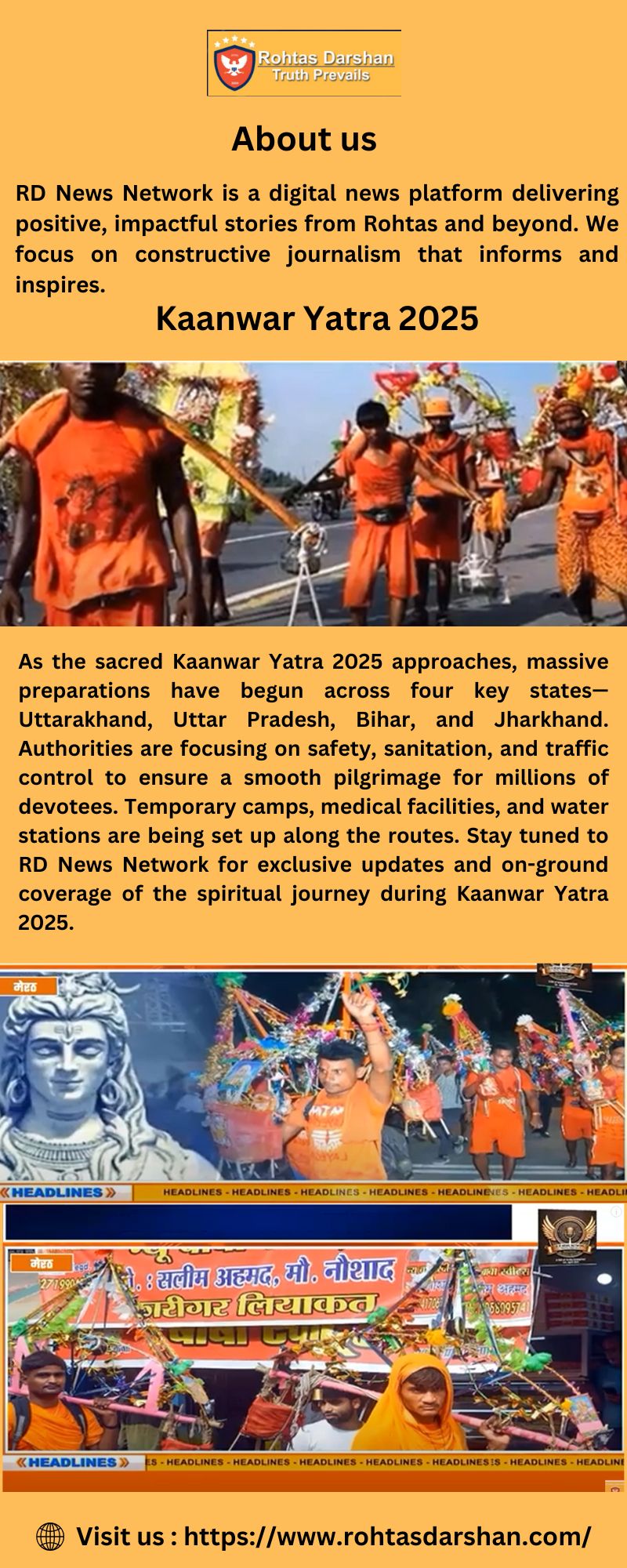 The sacred Kaanwar Yatra 2025 is set to begin, and massive preparations have started across four major states—Uttarakhand, Uttar Pradesh, Bihar, and Jharkhand. Authorities are ensuring safety, logistics, and crowd management for the smooth flow of millions of devotees. RD News Network brings you the latest updates, ground reports, and exclusive coverage on this spiritual event. Stay connected with RD News Network for all real-time news on Kaanwar Yatra 2025.