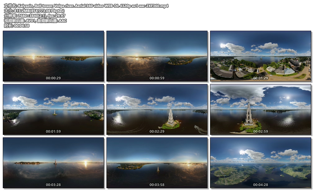 Kalyazin, Bell tower, Volga river. Aerial 360 video WEB DL 4320p av1 aac 2XF360.mp4