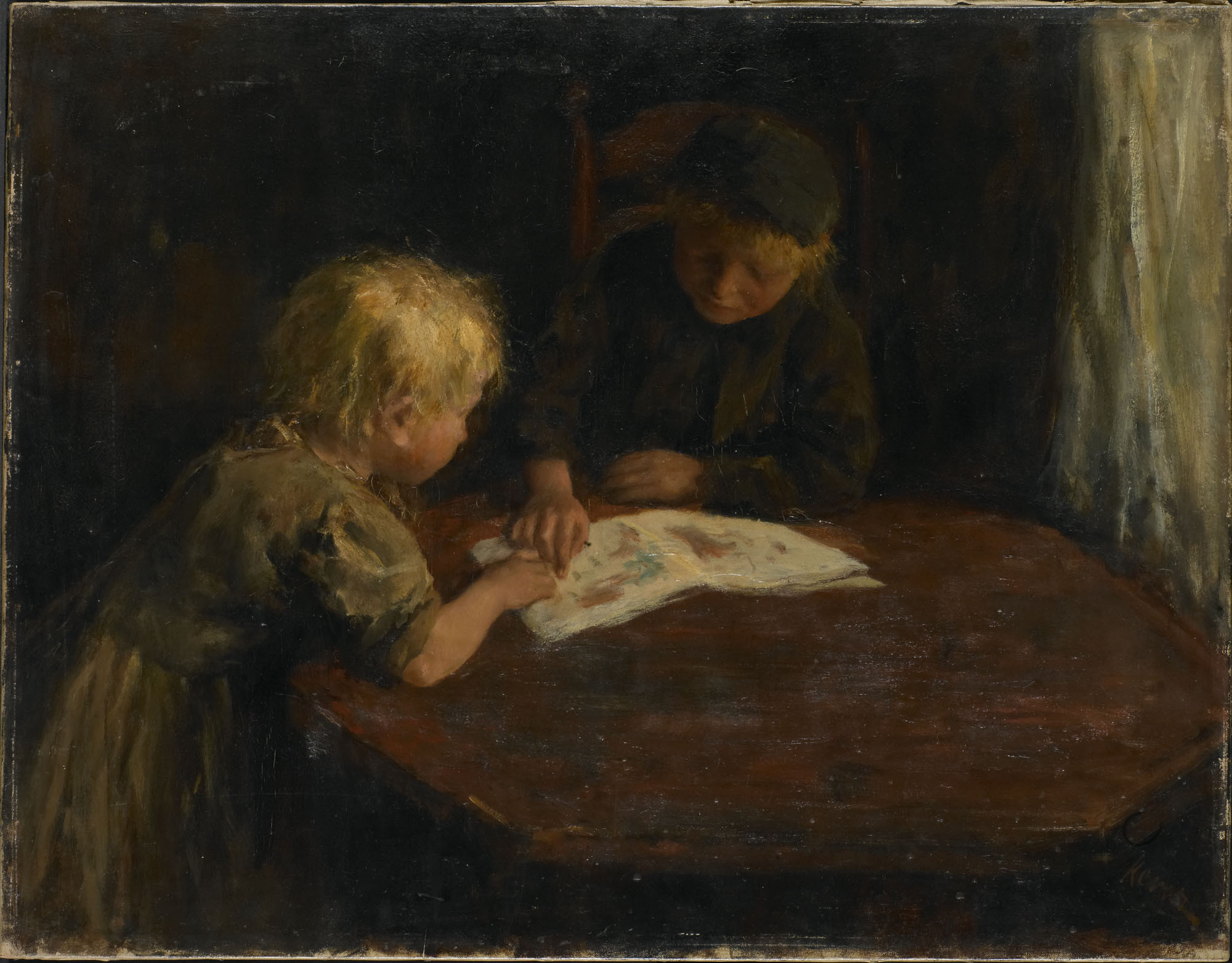 Kever, Jacob Simon Hendrik Дети с иллюстрированной книгой, 1910, 52 cm х 67 cm, Холст, масло