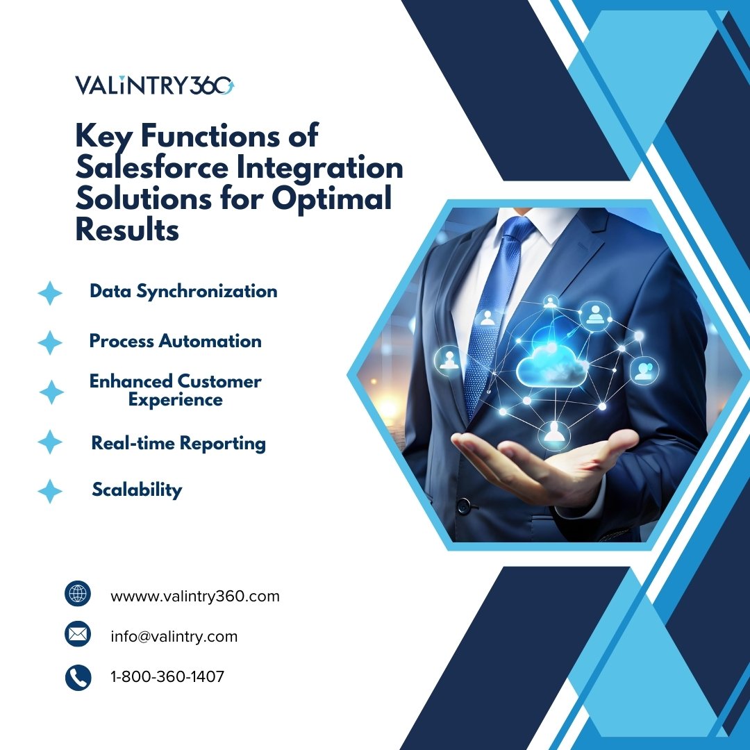 Salesforce Integration Solutions are essential for businesses looking to streamline their operations and maximize the potential of their Salesforce platform. VALiNTRY360 offers expert Salesforce Integration Solutions, enabling companies to seamlessly connect Salesforce with other critical business systems. By integrating Salesforce with platforms like ERP, CRM, and marketing automation tools, organizations can achieve a unified view of their data, improve workflow efficiency, and enhance decision-making.