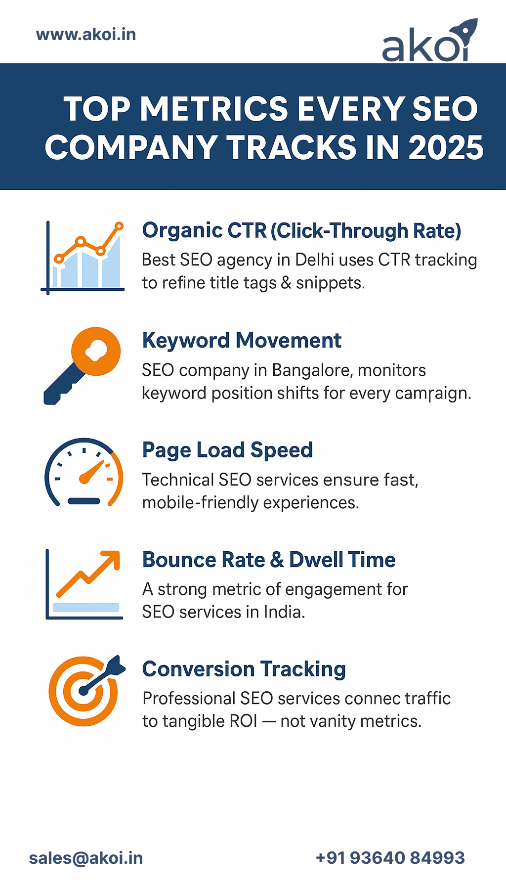 From improving Organic CTR and monitoring keyword movement to boosting site speed, reducing bounce rates, and strengthening conversion tracking—2025 SEO success depends on data-driven optimization. Akoi helps brands measure real search impact with advanced SEO analytics, technical improvements, and continuous performance refinement across all major search engines.