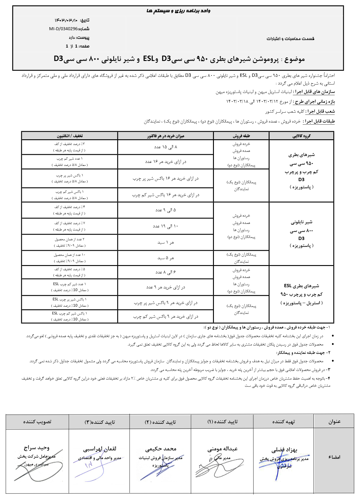 خردا پروموشن شیرهای بطری 950 سی سی D3 و ESL و شیر نایلونی 800 سی سی D3 1