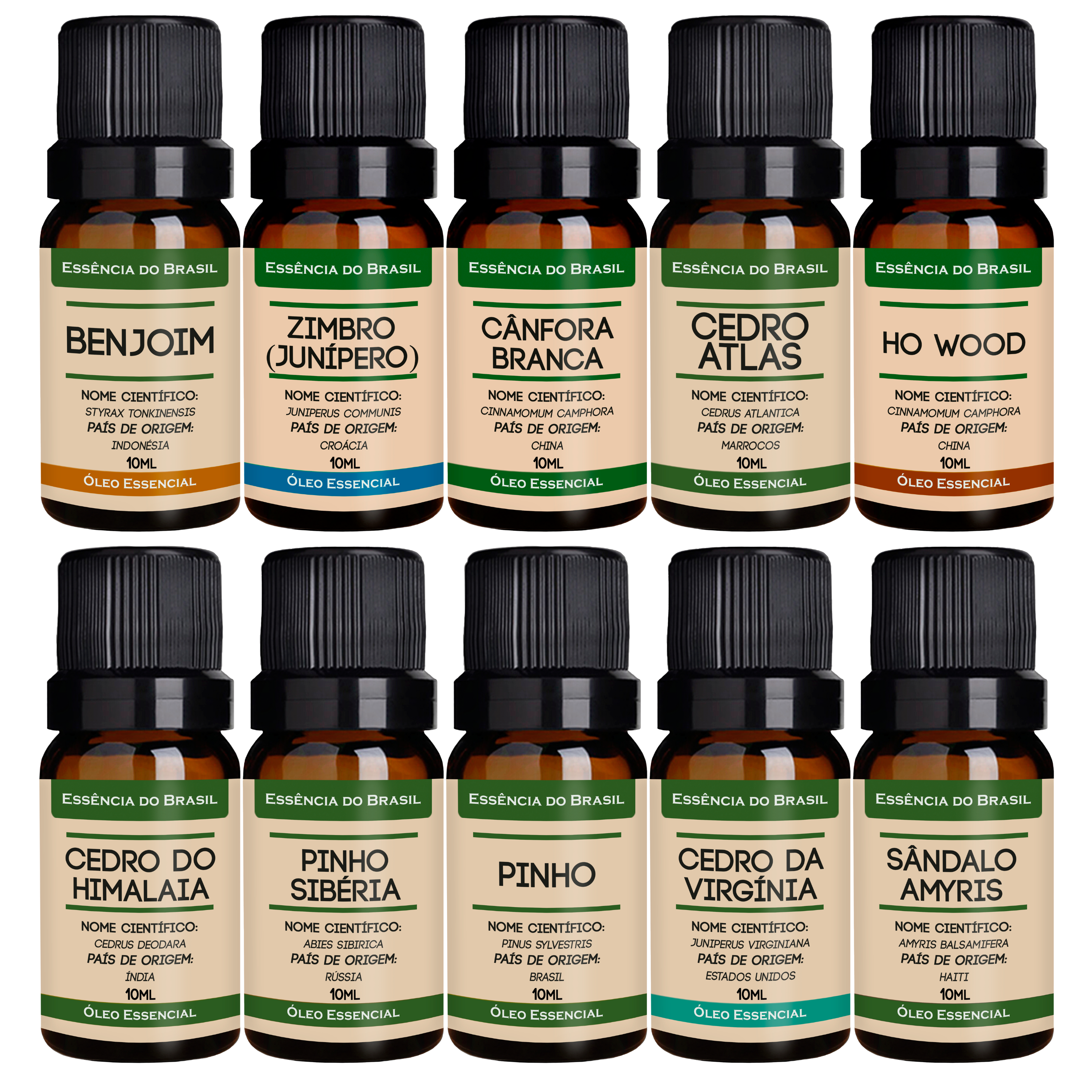 Kit 10 Óleos Essenciais Puros e Naturais Amadeirado