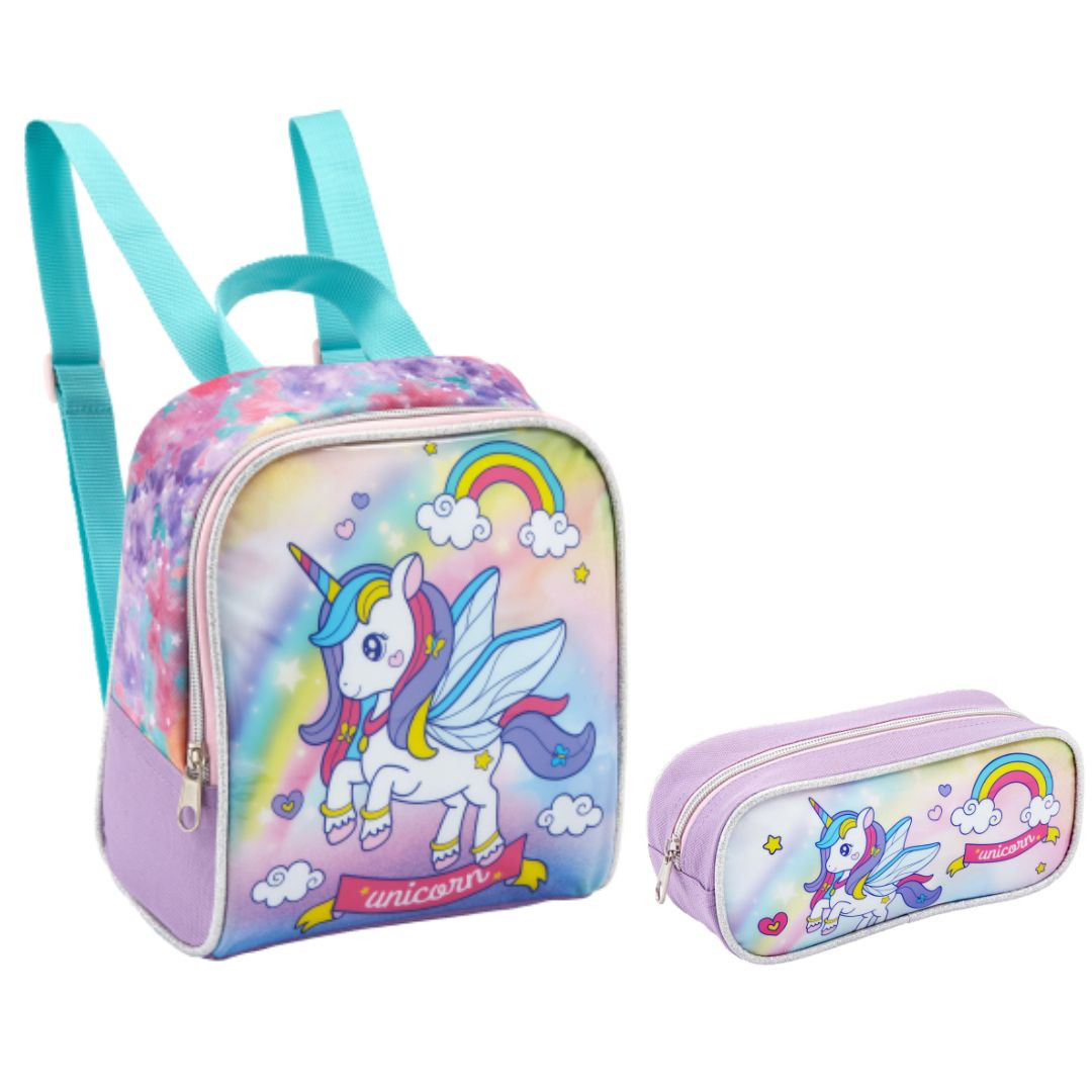 KIT Kit LANCHEIRA TÉRMICA UNICÓRNIO COM ASAS INFANTIL LA41371 + ES