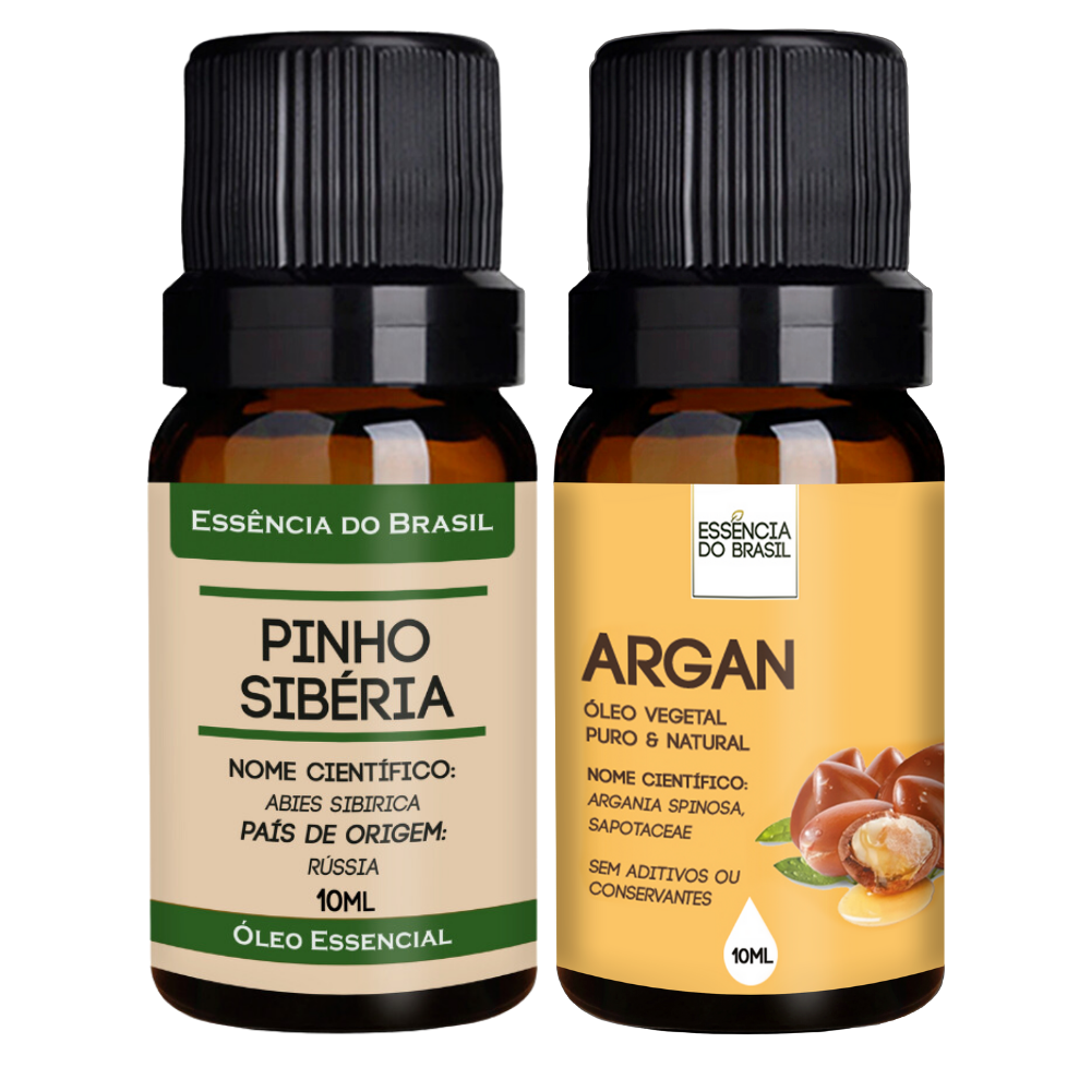 Kit Óleo Essencial Pinho da Sibéria 10ml +Óleo Vegetal de Argan 10ml