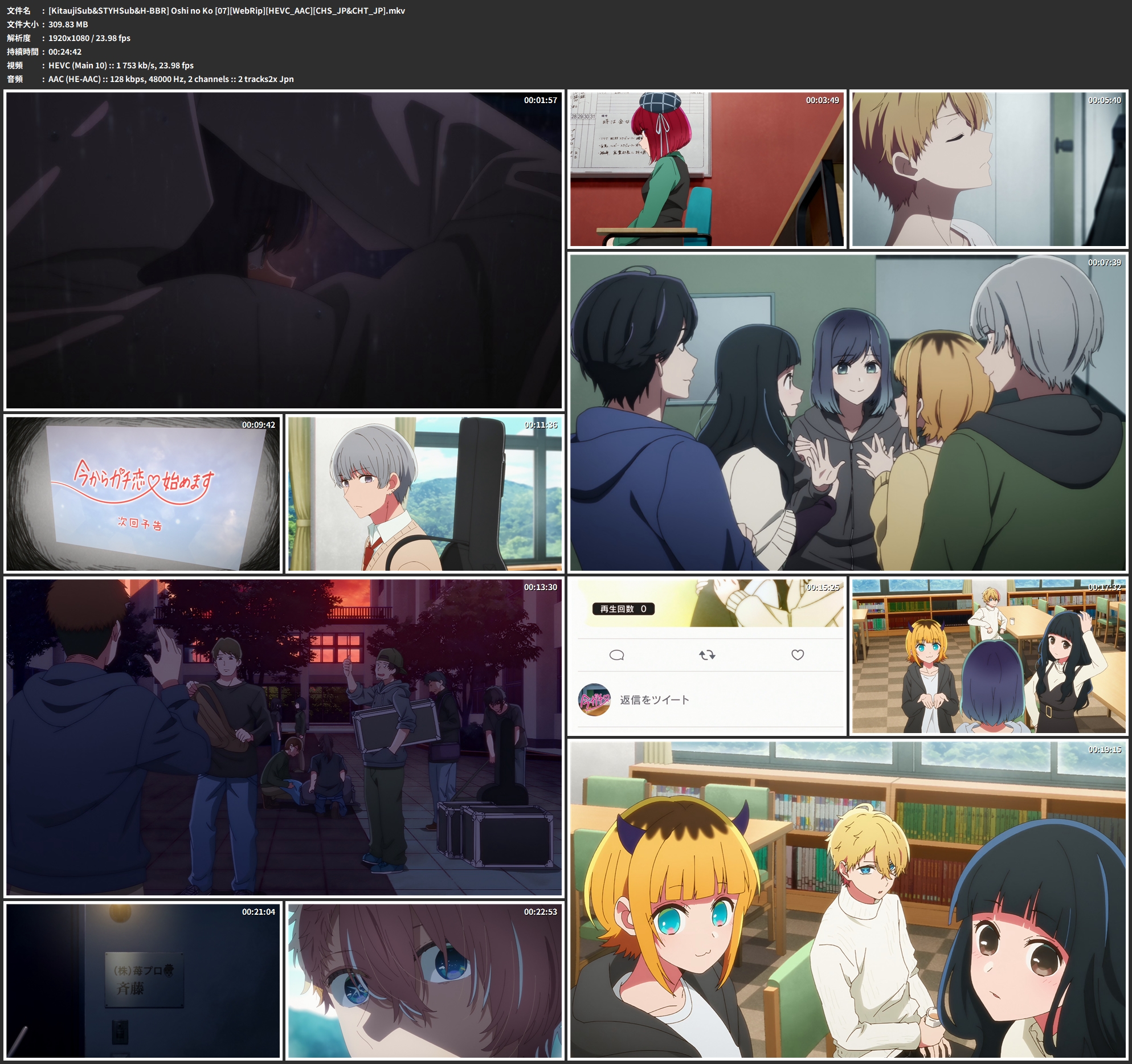 [KitaujiSub&STYHSub&H BBR] Oshi no Ko [07][WebRip][HEVC AAC][CHS JP&CHT JP]