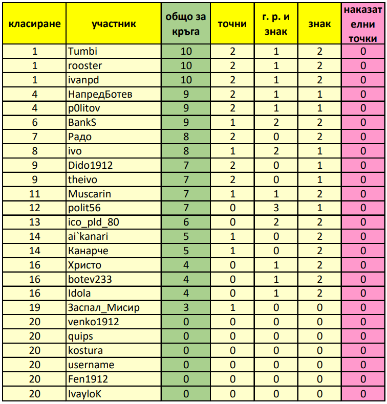 Класиране за 22 ри кръг