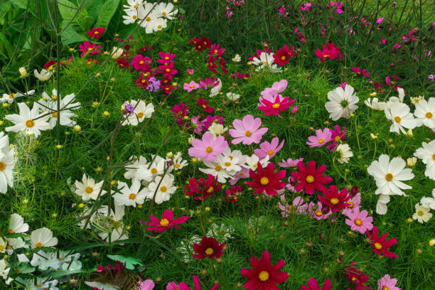 Kosmeya.Ischaschnye plants with white, pink, red purple flowers