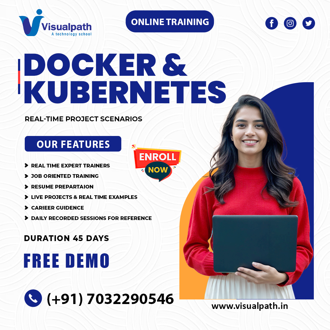 VisualPath offers Docker and Kubernetes Online Training, designed to help you master containerization through expert-led sessions and real-time projects. Our Docker and Kubernetes Course in India features hands-on labs, a job-oriented curriculum, and resume-building support. With daily recorded classes and 24/7 access, you’ll have complete learning flexibility. Available online across India, the USA, the UK, Canada, Dubai, and Australia. Call +91-7032290546 now for a free demo and start your DevOps journey today!
