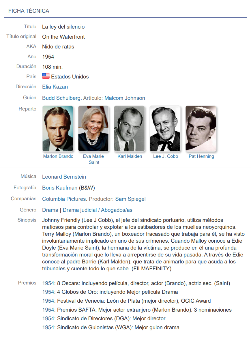 La ley del silencio ficha