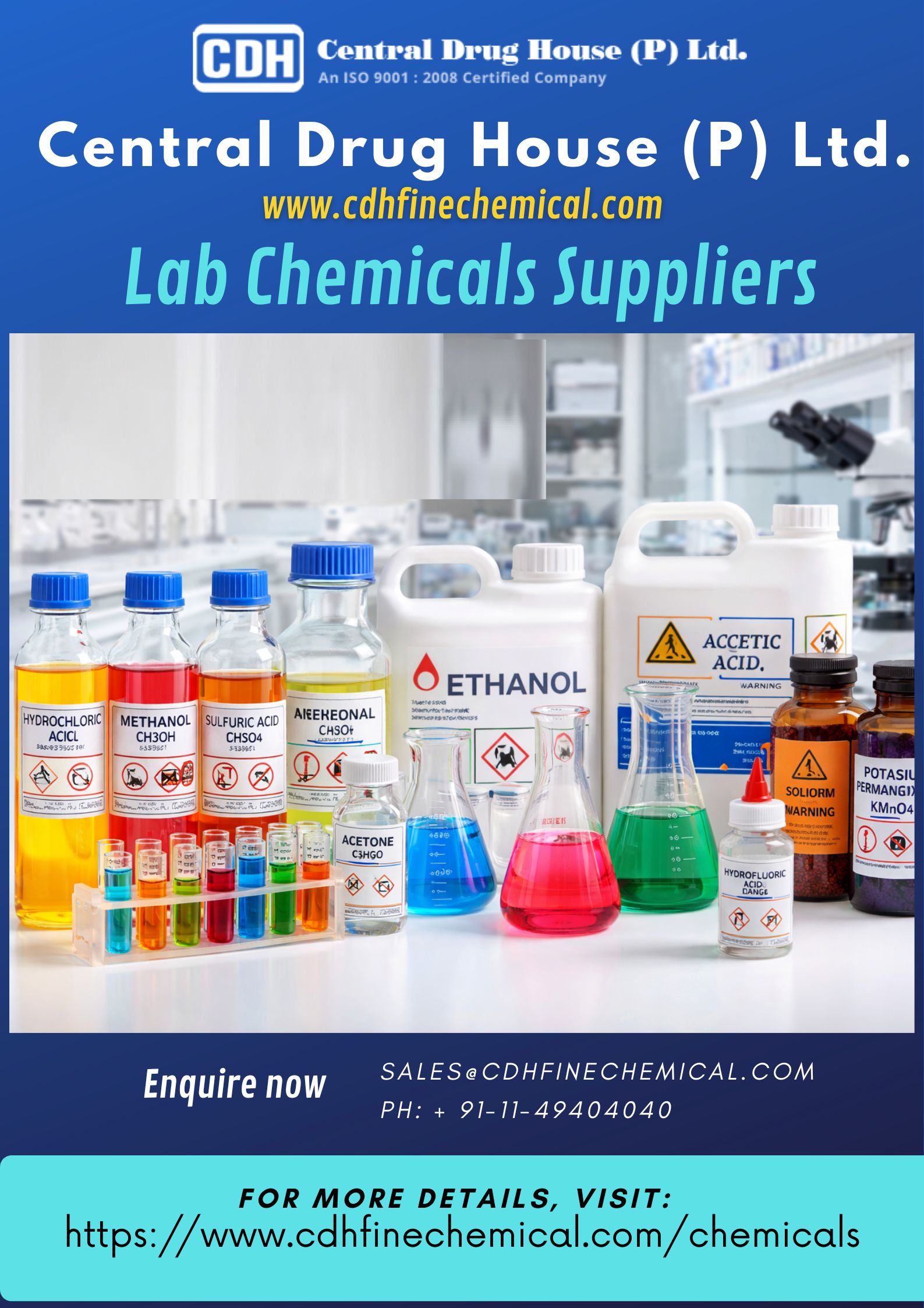 CDH Fine Chemical is among the leading Lab Chemicals Suppliers offering quality products for research and industry. We provide Laboratory Chemicals India with worldwide shipping, fair pricing, and simple ordering for global customers. For more details, visit: https://www.cdhfinechemical.com/chemicals