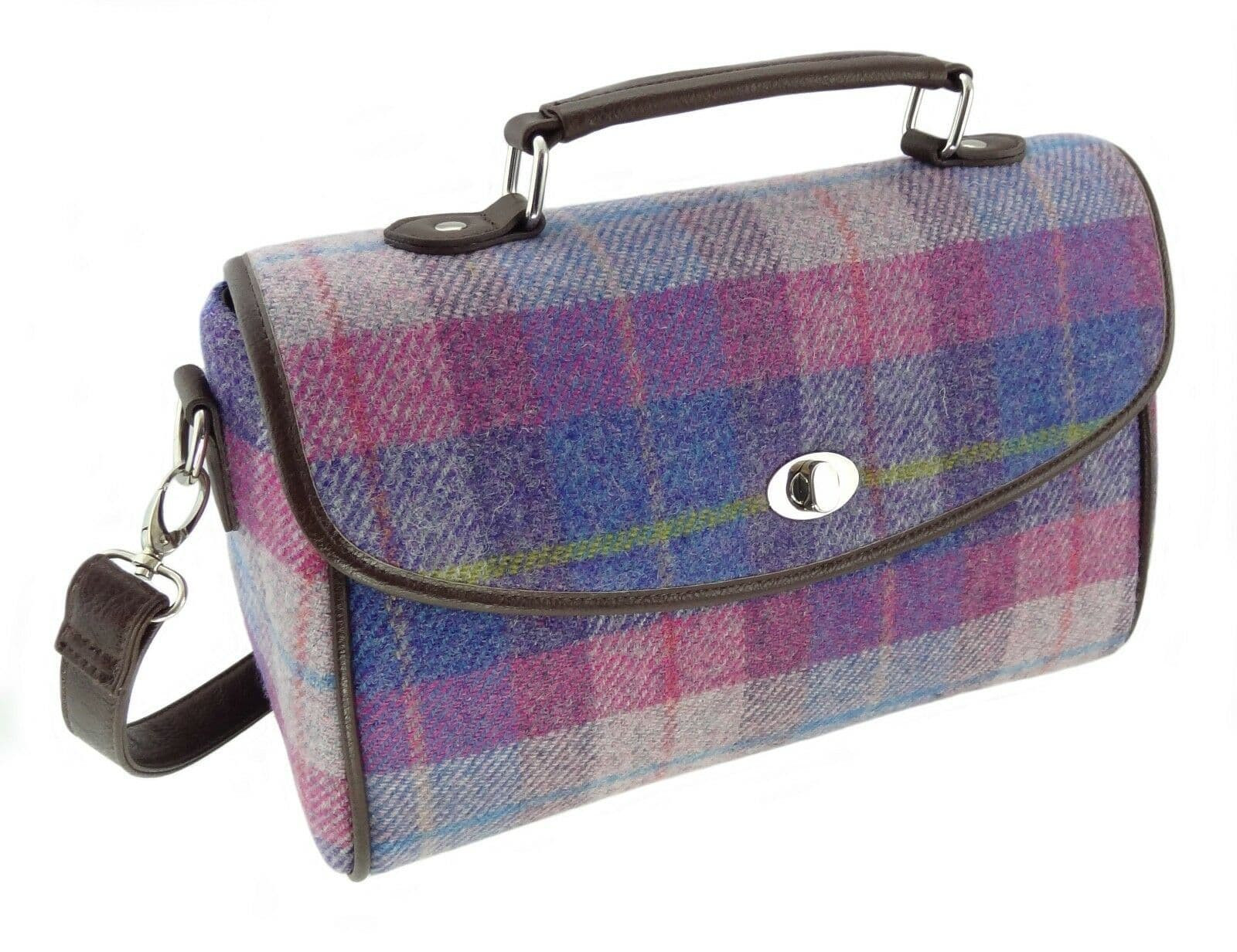ladies harris tweed calder new style satchel in purple pink tartan lb1021 col47 4779 p