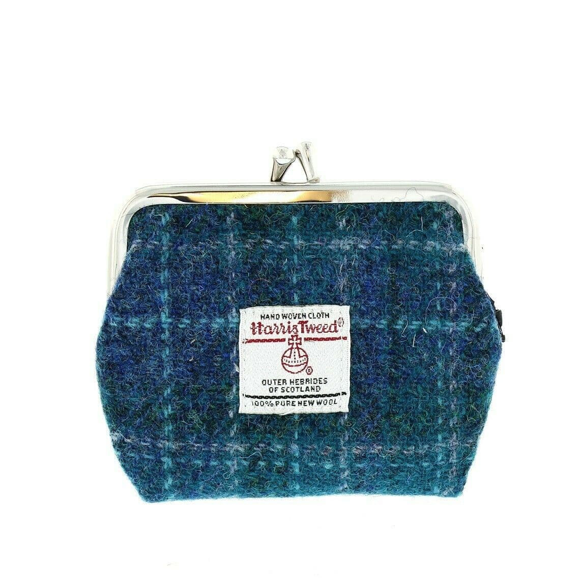 ladies harris tweed clasp coin purse eigg in sea blue check lb2035 col92 4998 p