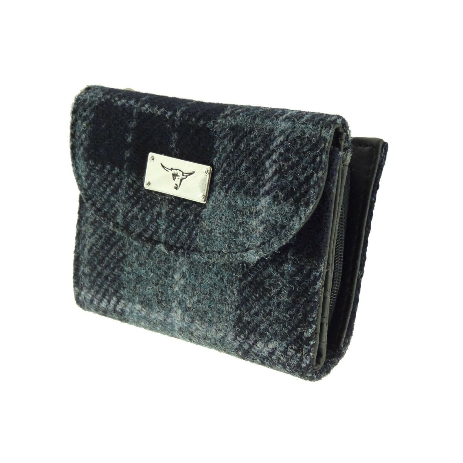 ladies harris tweed jura short wallet in grey black tartan lb2002 col95 4968 p