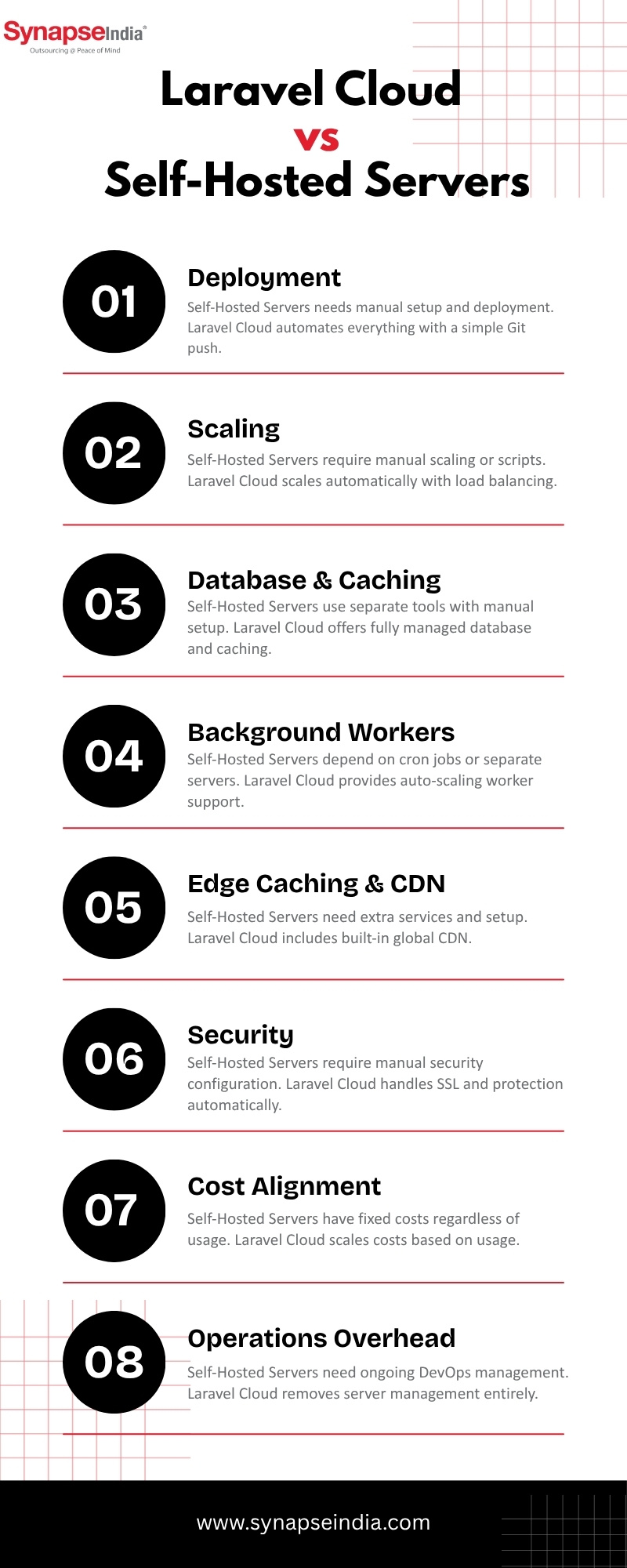 Choosing between Laravel Cloud and self-hosted servers impacts deployment speed, scaling, security, and costs. Laravel Cloud simplifies operations with automation, while self-hosted setups offer control but demand more management effort.