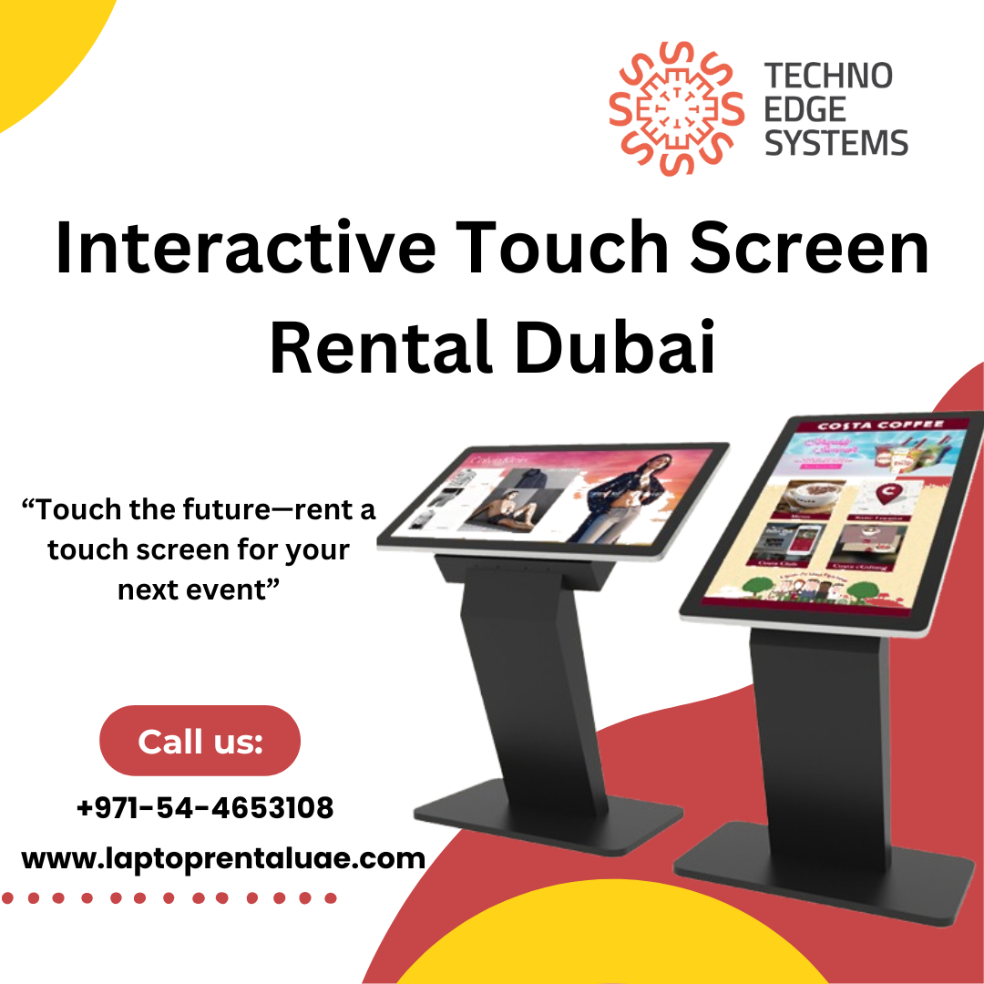 Get advanced Interactive Touch Screen Rental Dubai from Techno Edge Systems LLC. Ideal for all your event needs, from trade shows to meetings. we provide expert technical support and guidance from our skilled team, available both onsite and offsite. For more info, call us at 054-4653108 or visit us - https://www.laptoprentaluae.com/touch-screen-rental-dubai/