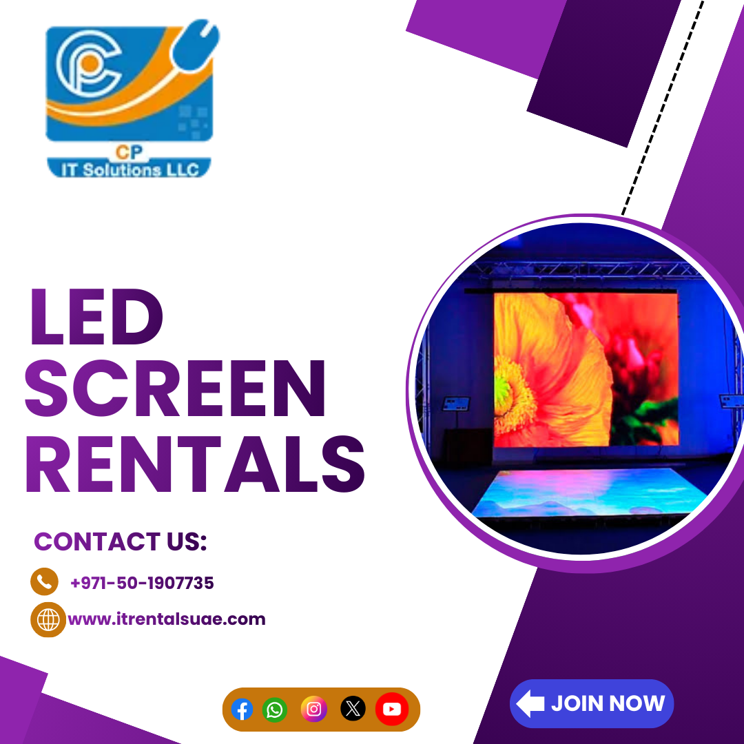 CP IT Solutions LLC offers premium LED Screen Rentals Services for events and exhibitions, delivering vibrant visuals and seamless performance. Perfect for trade shows, conferences, and expos. Call +971501907735 for reliable LED display solutions.