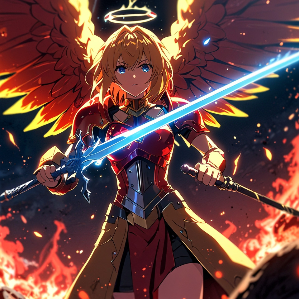 Leonardo Anime XL Warrior bright golden red angel holding blue 0
