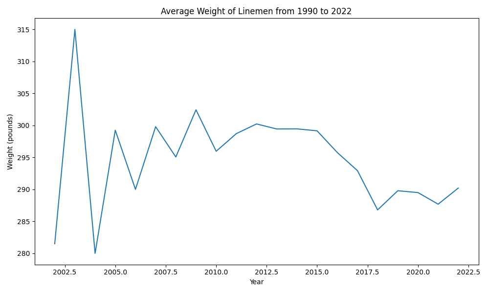 linemen avg weight year