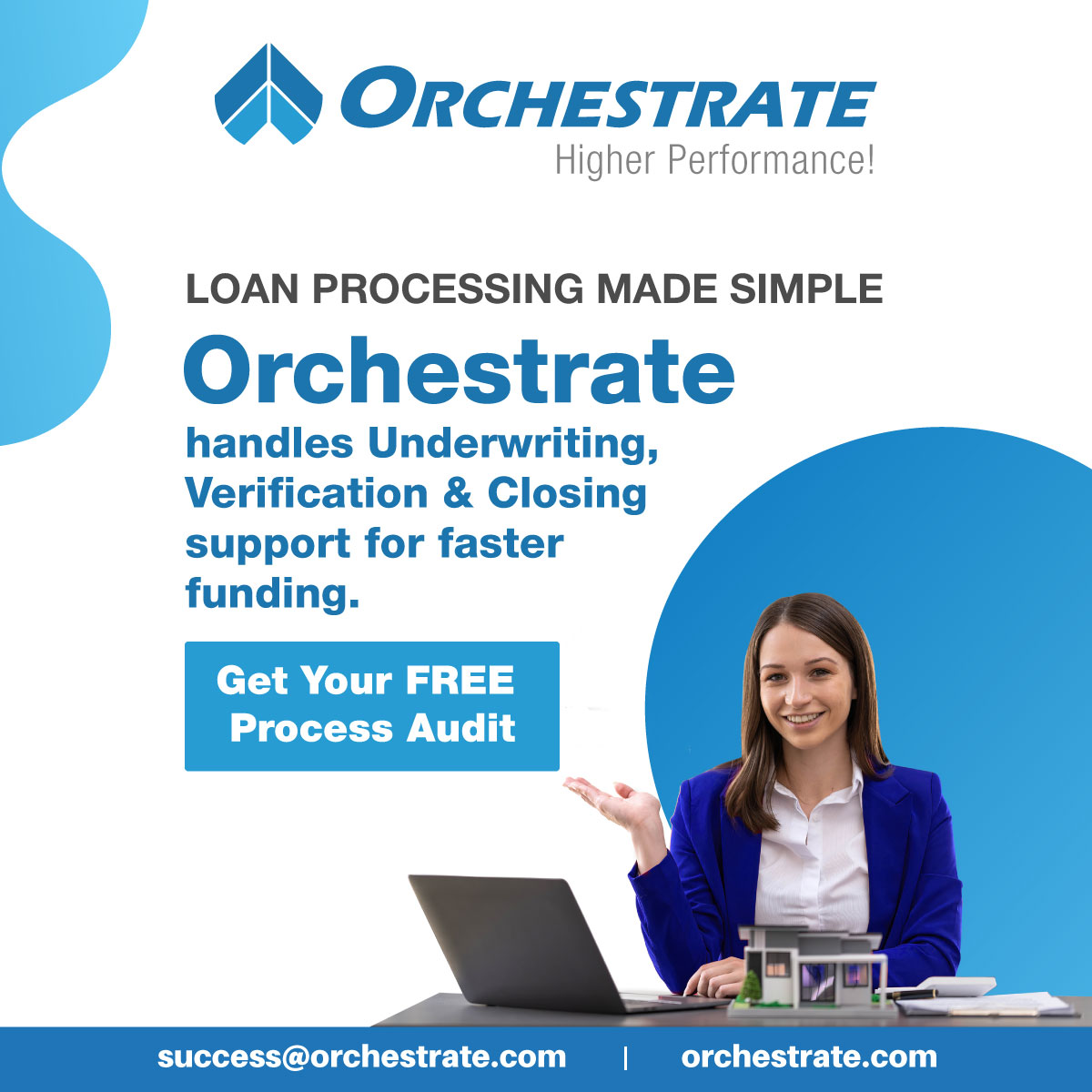 Simplify your loan processing with Orchestrate. We handle underwriting, verification, and closing support to help lenders achieve faster funding and smoother workflows. Get your FREE process audit today and boost efficiency with Orchestrate’s expert mortgage solutions.