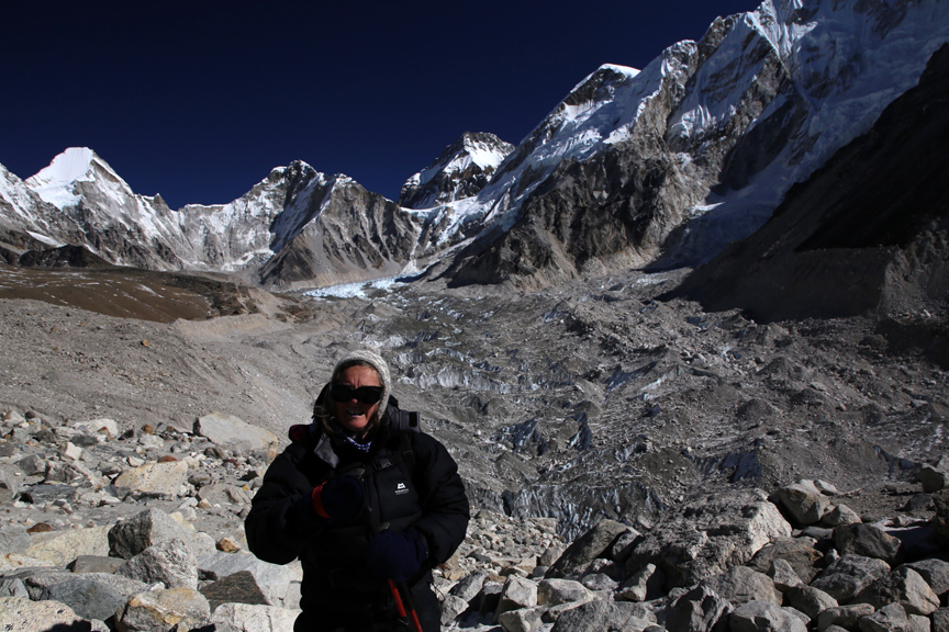 Looking up the Khumbu Glacier Nuptse 7861m on the right of the photo