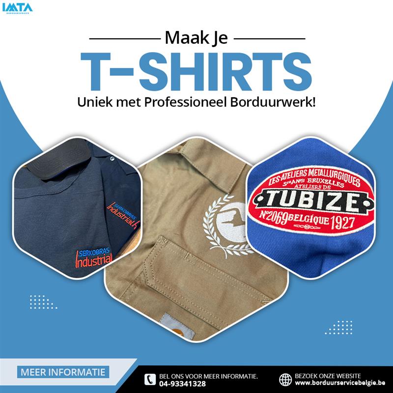 Maak je T-shirts echt uniek met professioneel borduurwerk: Borduurservice België personaliseert met logo’s, teksten of afbeeldingen. Vanaf 1 stuk, in eigen atelier geproduceerd voor een luxueuze, duurzame afwerking die jarenlang mooi blijft.