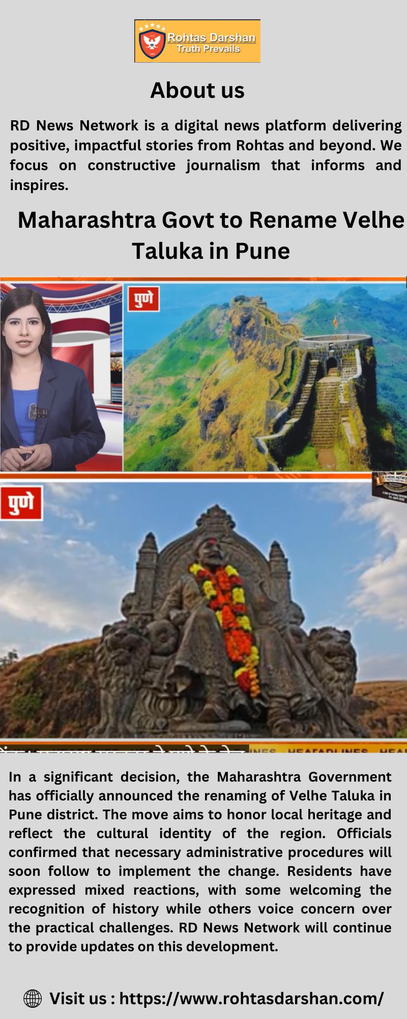 In a significant administrative update, the Maharashtra Government has officially announced its decision to change the name of Velhe Taluka in Pune district. The move is part of the state’s ongoing efforts to realign regional identities with historical and cultural relevance. Officials stated that necessary notifications and legal formalities will follow soon. Local residents and organizations are expected to be consulted in the process.