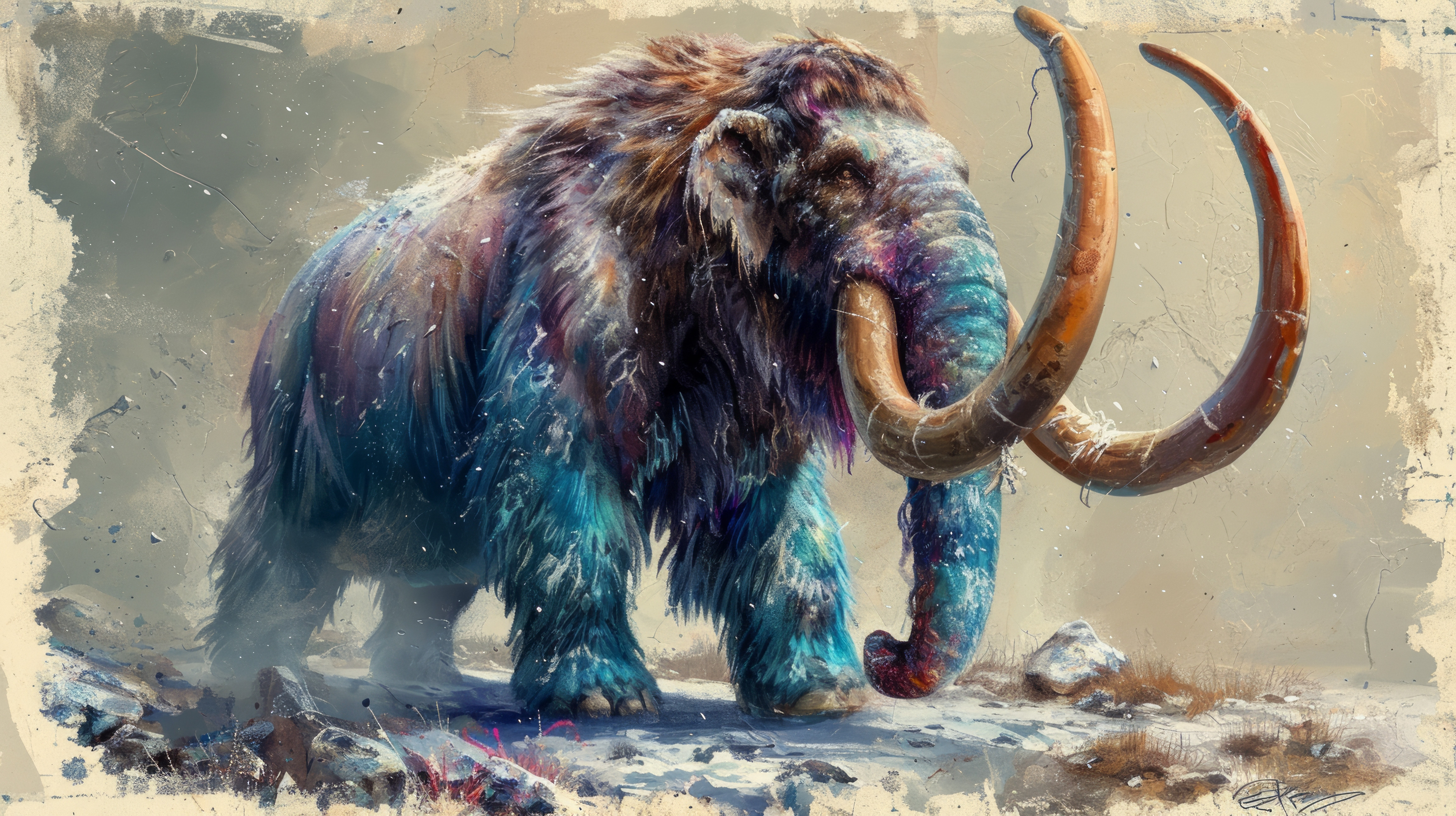 mammoth pastel color illustration wallpaper white border edges amazing focus ar 169 00052 00